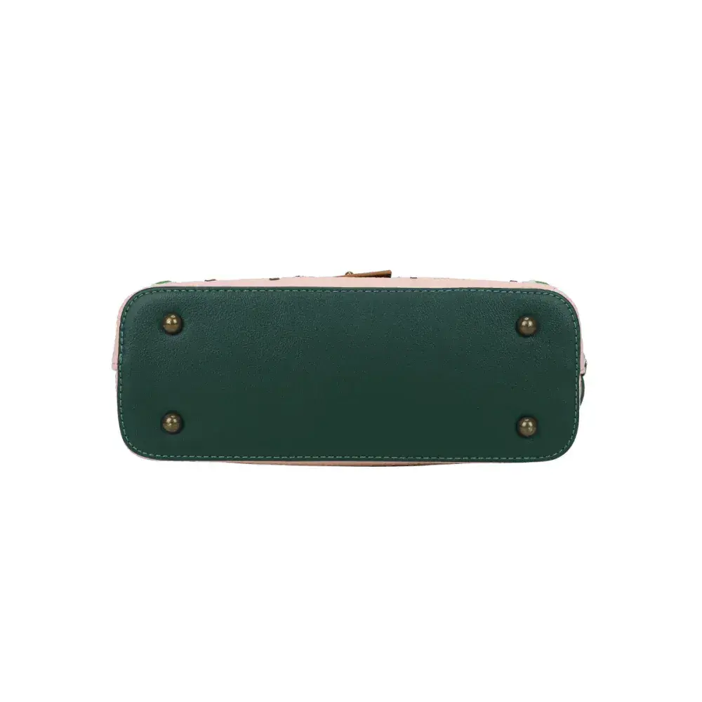 Printed and embossed vegan leather with hand stitched details